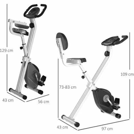 This magnetic training bike from HOMCOM. Adjustable to eight different resistance levels to suit you, it is fitted with a five-level adjustable seat. Applicable height from 155-180cm. An LCD montor is placed on the front of the cardio bike, which displays time elapsed, speed, distance, calories and heart rate (meaused by the metal panels on the handlebar). An ‘X’ shaped metal frame for strength and stability of the indoor magnetic fitness bike, it can be folded for easy storage when not needed.