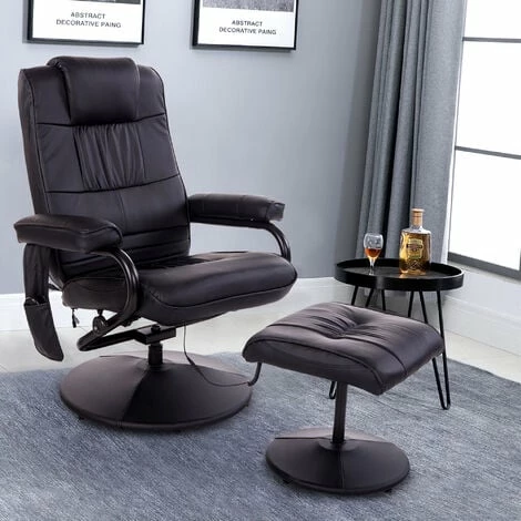 After a long day, you need a relaxing chair to relax and melt the aches and pains away. This HOMCOM recliner massage chair set does just that. It comes with a chair and footstool, so you have everything you need to put your feet up – both are padded for comfort, with PU leather upholstery for a sleek look. The chair reclines back to a maximum 145° angle, with 10 vibrating points (controlled by the included remote) to give you the full experience with sitting, lying and 360° rotating.