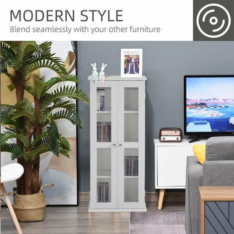 Our CD storage units from HOMCOM is a great way to store all your CDs, DVDs, and other media cases. Inside, there are four tiers – space for up to 100 pieces. The tall design CD tower helps use limited space effectively. The included anti-tipping straps keep the DVD storage units secured to the wall, helping to avoid potential injury and increase stability.