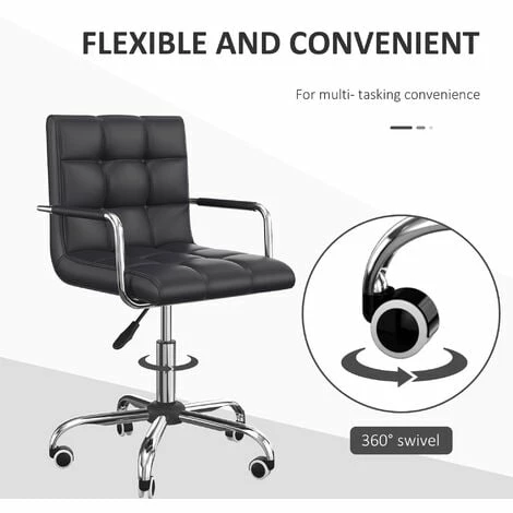 Let the effortless combination of style and comfort lead the way in your home office – choose this ergonomic office chair from HOMCOM. The executive office chair has a great seat and stylish armrests to bring you comfort at your desk. The height of this pc chair can be adjusted to a working level best for you. A heavy-duty base for solid support, and comes with five wheels for easy movement. This comfy chair is a great solution for you to work at home.