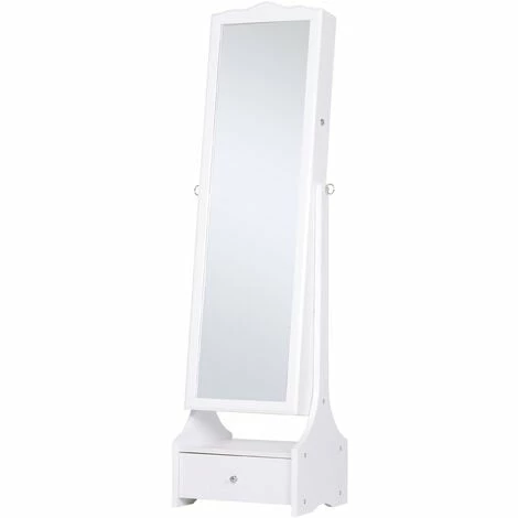 Infuse elegance and easy organisation into your everyday routine with this mirrored jewellery cabinet from HOMCOM. Its freestanding design combines a long and adjustable-angle full-length mirro. It is here where there is a significant amount of space for storing all your jewellery, make-up, perfumes.