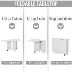 Make large unused tables at home a thing of the past. Chose this table from HOMCOM for an option which saves space when needed. Using thick particle board for a body which is tough and durable, it is crafted into an expandable design, where both sides lift up from the bottom to provide extra surface room for up to six people, whilst dropping back down into one compact and small unit. Inside the centre structure, two shelves sit for easy and discreet storage, whilst the two wheels allow easy movement across the floor