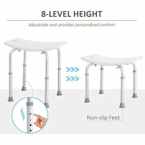 Simple, sturdy, and multifunctional, the HOMCOM shower and bath bench is perfect for those who need extra help in the shower or struggle with limited mobility. It features a sturdy aluminum frame and a high-density polyethylene seat to provide extra security and comfort. It also includes adjustable legs and non-slip rubber safety tips for additional stability. No tools are needed to assemble the shower chair. Comfortable and safety come together in this lightweight yet exceptionally stable and sturdy bath seat.