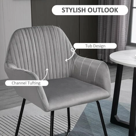 Style from all angles starts with this occasional chair, from HOMCOM. The seat is crafted into a smoothly-curved shape, which is rounded at the back but becomes boxy at the front