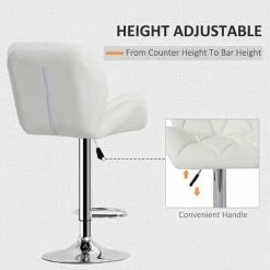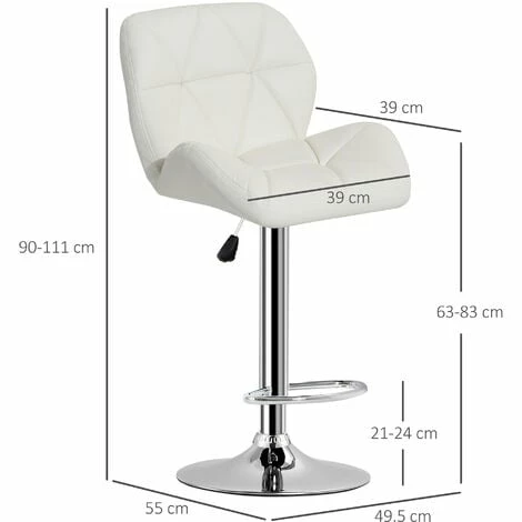 This HOMCOM bar stool comes with a full back support with a modern diamond style, it is made with PU and a chrome base. The breakfast bar stool can also be moved and adjusted in height between 90 and 111cm and has a foot support for comfort, It has a stylish and modern feel with a comfortable seating position. It can be used in the kitchen with your breakfast bar, in the lounge and would suit any room décor.