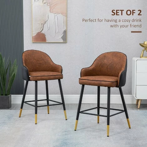 Maximise the space of your bar or dining area with these modern barstools from HOMCOM. Whether you want to start the morning with a comfy breakfast or end the night with drinks, this sleek barstool set suits your need. Upholstered in geometric patterns on the backrest for a stylish look. The powder-coated steel legs give the bar chair a robust foundation and ensure easy maintenance. The lower footrest prevents legs from dangling around for a relaxing sitting experience.