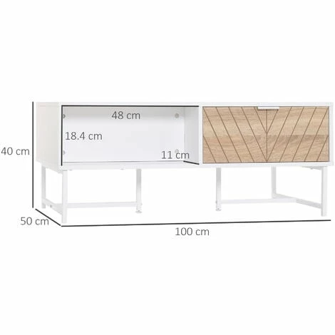 This HOMCOM storage coffee table is a great piece for the home. It features a large tabletop, two shelves and two drawers: room for books, albums and similar. Made from particle board, the structure is sturdy, with metal legs for full support. It’s finished with adjustable feet and protective footpads for balance, whilst protecting the floor at the same time.