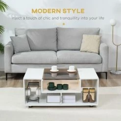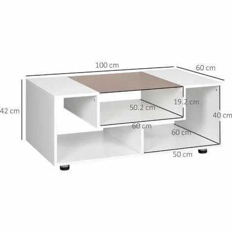 Minimal furniture, with a touch of modern – this HOMCOM coffee table. It comes in a white design, fitted with a brown tinted glass panel which gently breaks it up for a modern feel. Three compartments below the table top for plenty of storage and display space. Made from particle board for durability, it’s finished with foot pads to gently protect the floor.