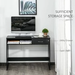 Endless home style doesn’t have to be complicated – exactly why this work desk from HOMCOM is on point. Made from solid particle board, it is crafted into a clean boxy shape which looks great in all home and office spaces. It features one open shelf, a drawer and a large table top to give you lots of work and storage room. The drawer is fitted with a handle to open easily, and it’s finished with a melamine coating for light protection against everyday wear. A simple home statement which does more than just look great.