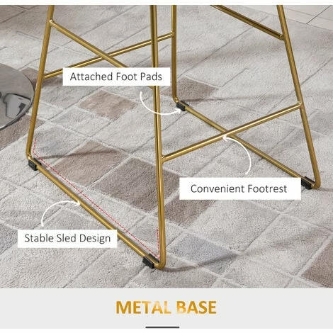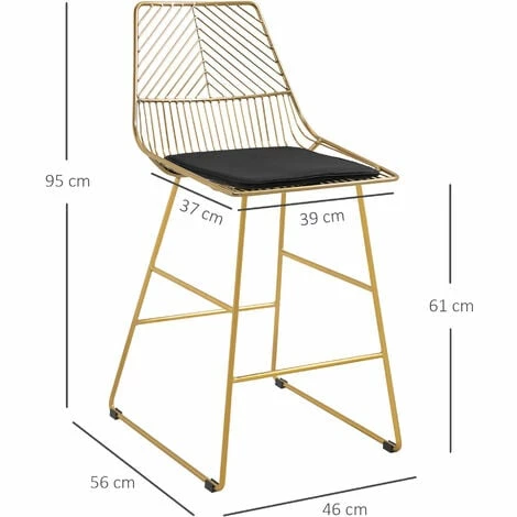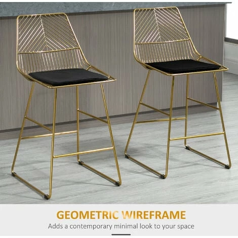 Cut-out all the work for an elegant yet cool everyday seat – bring these two bar stools from HOMCOM into your home. The frames are made from steel, so both are tough and sturdy, supporting up to 120kg each, with the plastic footpads helping to protect the floor. The kitchen stools with backs are made into a cut-out geometric shape design – a minimal and modern look. The seats come with a small velvet-touch cushion for comfort, finished with footrest bars to hold your legs.