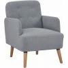 ● Modern linen-look upholstery with button tufting