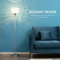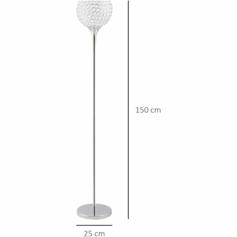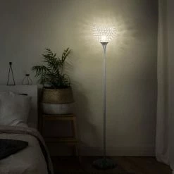 Light up in glitzy style this season – bring this floor light into your home/office. It features a crystallite beaded shade – clear in colour to allow the bulb to illuminate out gently – creating a soft glow which still keeps your area brightly lit. The frame is made from metal for strength, with a large round base so it stands balanced and steady