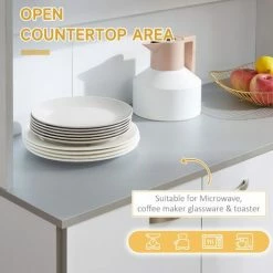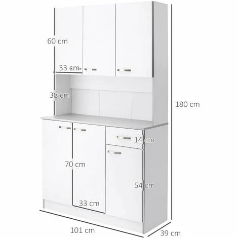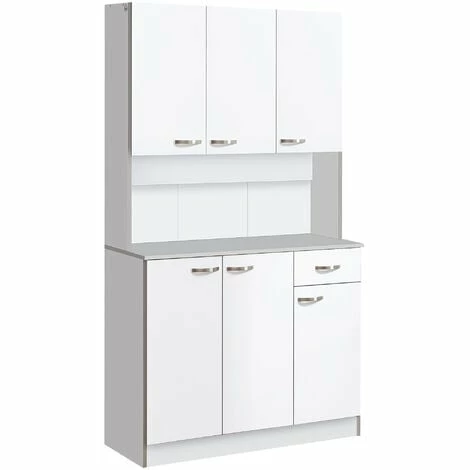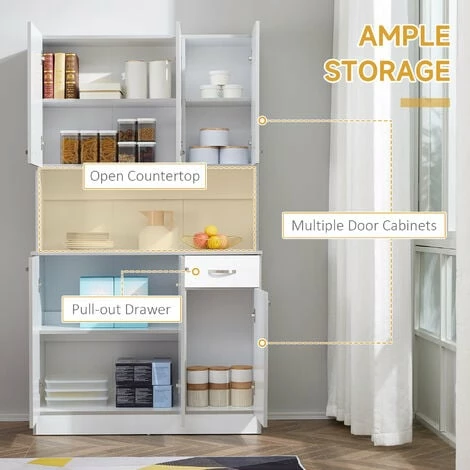 Creating a stylish storage option has never been so easy! This modern larder unit from HOMCOM fits nicely with any decor and can be used in the pantry, closet, garage to create additional storage. White coated engineered wood provides an easy to clean, smooth surface that will help keep your kitchen cabinet clean and sanitary.Multiple door cupboards, a pull out drawer, and an open countertop shelf provides spacious storage in this compact kitchen dresser.