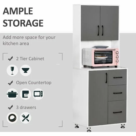 Come and look at the special designed kitchen dresser from HOMCOM! Equipped with 2 storage with board inside and 3 drawers helps you store so many things and make them well organized. The larder cupboard can be placed in any room like kitchen, living room or study. Anti-toppling design and Cable management system provide you a better user experience. Don’t hesitate and take it home!
