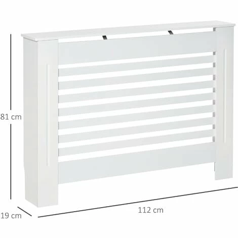 This modern radiator cover cabinet from HOMCOM is a designed to help hide old or unsightly radiator, protect hands from a hot surface and offer extra shelving for ornaments. The slatted design with sufficient vents allows for fluid heat flow while still preventing children and pets from touching the hot radiator surface. Manufactured from durable MDF in white finish for long term service, it is an elegant yet practical addition to your home and office.