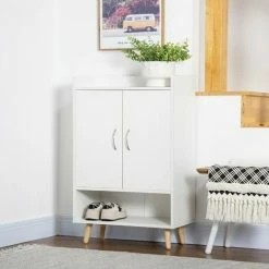 Let this modern cabinet from HOMCOM give your shoes a welcome place for the every day. The clean white design looks great in a variety of home styles. Features a concealed cabinet with three shelves, an open bottom shelf and flat top – plenty of storage. A practical solution for the home and office.