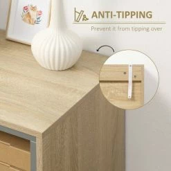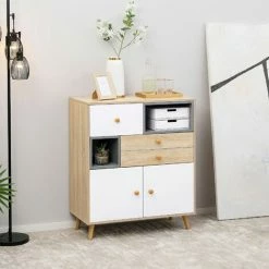 Keep your home stylish and the space tidy: look no further than this freestanding cabinet from HOMCOM. Cut to a clean shape for simplicity, it features three drawers, two shelves and a cabinet. The boxy shape and white, grey and wood-effect design creates visual interest, wherever you chose to stand it.