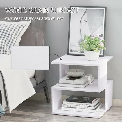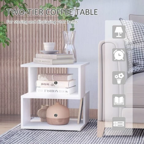 Invite unique style into your home with this side table from HOMCOM. Made from thick particle board in a sleek finish, it is crafted into a modern design which is a great focal point for living rooms and bedrooms and its two-tier open design makes it a great storage option for a wealth of possessions. With a smooth surface finish, it is easy to clean and maintain, making it great for those with busy lifestyles.