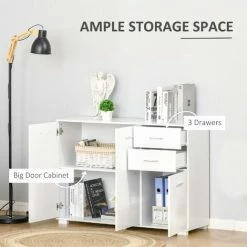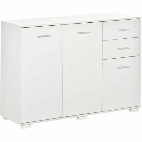 Bring sleek-designed practicality into your home with this storage cabinet from HOMCOM. Using particle board to ensure strength and reliability, it is crafted into a spacious 76x106cm design, with a large double door cabinet with an adjustable shelf, two top slide-out drawers and a smaller side cabinet, giving you plenty of space to store and organise your home. Perfect for use in bedrooms, hallways, living rooms and the bathroom.