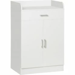 Increase storage in the home and beyond with this HOMCOM cabinet. The modern look is great for breathing life into your space. Comes with a main cupboard with handy adjustable shelf and flat table top – plenty of room for holding what you want. Metal handles to open the doors and drawers easily.