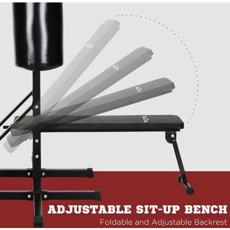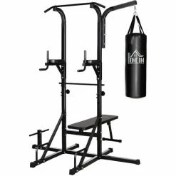 Bring the gym home with this pull up tower station from HOMCOM. The pull up bar station includes the padded 20kg punching bag, sit-up bench, pull-up bar, and dip station – plenty of features to focus on your legs, arms, and abs, etc. There are rubber pads on the handles of each part for safe comfort and grip. The gym bench can be moved up to form a back pad and it’s padded with foam for comfort. Build your biceps, triceps, core, legs, and more with this fantastic piece.