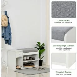• 2-in-1 design, combines a sitting bench with a shoe storage unit