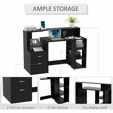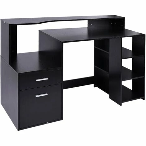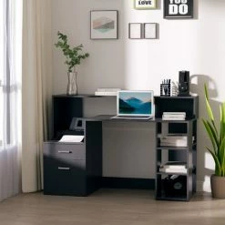 Take your office work set-up to the next level: go for this PC desk from HOMCOM. A multi-use design, it features three side shelves, a two-drawer storage cabinet, a large worktop and a high top back, giving you more than adequate room for working from and storing everything in one compact place. With stand-out metal accents to finish, this desk is made with ultimate style in mind – something you’ll love inviting it into your work space.
