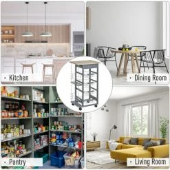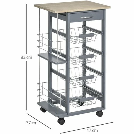 Looking to maximize your kitchen? Need a kitchen storage cart for your apartment or dorm room that won’t take up tons of space? This kitchen storage cart features a compact and simple design that can be fit into various styles of decorations. Four slide-out metal baskets offer ample storage of dry food, fruits and vegetables. Side racks are great for spices and the top drawer for cutlery and utensils and four wheels to ensure easy and smooth movement across the floor.