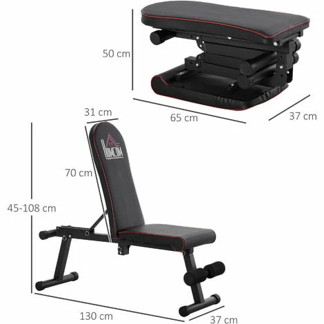 The multi-use design of this sit-up bench, from HOMCOM, allows you to focus on the arms, legs, waist and hips. This means you can perform push ups, sit ups, leg raises and curls etc. Steel forms the frame, with a tough powder coating for extra strength and protection. The main pad is filled with foam for comfort, with smooth upholstery to wipe clean easily. It’s finished with anti-slip feet ends and can be folded to carry and store easily.