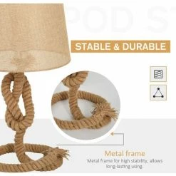 Let the nautical style of this table lamp, from HOMCOM, bring an individual touch to your home furnishing this season. The underlying frame is made from steel for a rigid shape, with rope wrapped around which creates a cool and stand-out look, with the bottom part in a large and round circle to keep the balance. A fabric lampshade in beige is placed on the top, allowing light from the bulb to emit gently for a welcoming atmosphere.