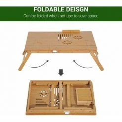 This HOMCOM laptop stand made of high quality bamboo is economical and great to use. It is an ideal table for placing your laptop while still comfortable on your bed or sofa. It is able to make your laptop cool with ventilation holes and also tilt up to an angle that ensure easy use. It has enough space on the side to hold many papers or even your external mouse. It is a practical and effective item to have.