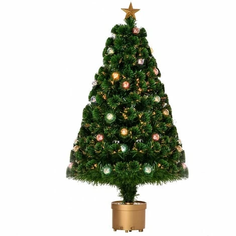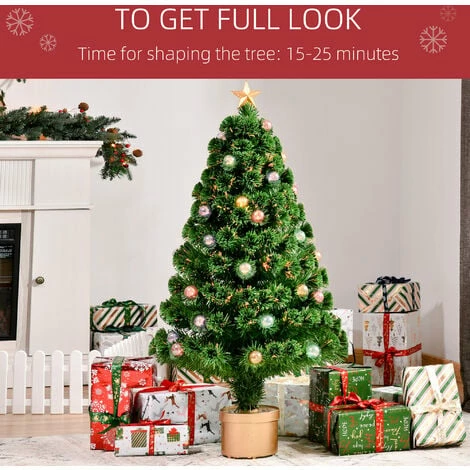 Get festive with this pre-lit artificial Christmas tree from HOMCOM. No more hassling with wires, just plug it in and watch the multi-coloured lights create a beautiful atmosphere, whenever. Its 3ft size is ideal for smaller spaces and perfect for popping your presents under. Spend a little time fluffing the branch tips to make them thick and full. Comes complete with a pretty gold tone pot, so it stands in place.