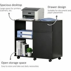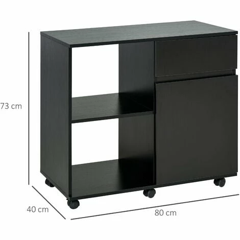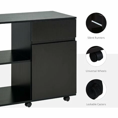 If your current printer desk area is not enough – expand it with this HOMCOM office storage cupboard. Comes with a table top, two open compartments, a drawer and cupboard – plenty of room for keeping your files, papers and other work essentials stored. Made of particleboard, the office storage cabinet is tough and durable for daily use. It’s finished with six castor wheels to move easily, 3 have locks to fix the office drawers at the required position and keep stable.