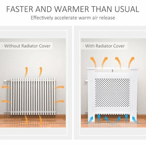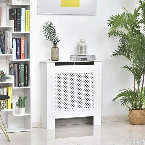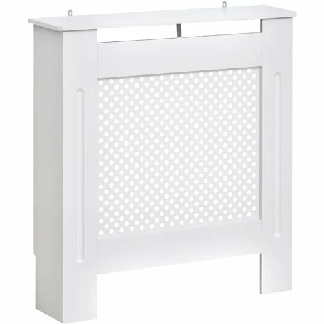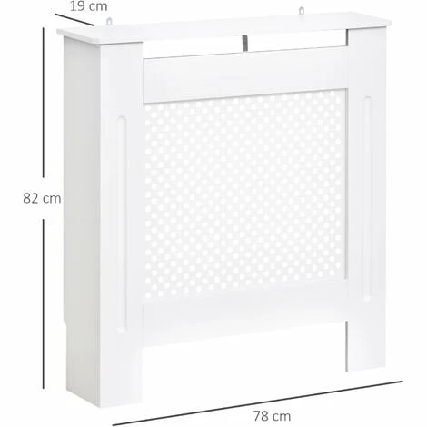 This HOMCOM radiator cover cabinet is a must for any home, cover your unsightly radiators and give your room a touch of elegance. Made with MDF board with a round shape grill, it is finished in white as a neutral colour to match any décor. The white painted cabinet has a front grill design to look great and still radiate the heat efficiently and still have enough access to any controls attached. It’s easy to assemble and will look great in any décor.