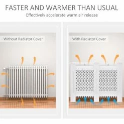 This HOMCOM radiator cover cabinet is a must for any home, cover your unsightly radiators and give your room a touch of elegance. Made with MDF board with a round shape grill, it is finished in white as a neutral colour to match any décor. The white painted cabinet has a front grill design to look great and still radiate the heat efficiently and still have enough access to any controls attached. It’s easy to assemble and will look great in any décor.