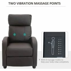 Let this reclining massage chair from HOMCOM take away stress and fatigue. Controlled by the included remote, it is fitted with two vibration massage points on the back, with eight different modes and five intensity levels to pick a setting which is most relaxing for you. The back manually goes back to maximum 150° so you can lean back and relax. It’s filled with sponge for comfort, finished with smooth faux leather for a touch of timeless style.