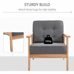 Make a statement in your home with this delectable lounge chair from HOMCOM. Made from solid beech hardwood, the smooth polished frame will provide years of reliable enjoyment. Thickly padded, the foam cushion and back cushion ensures you’ll have hours of comfortable sitting time. Upholstered with grey linen, each cushion is easy to clean, making the living room chair great for busy and hectic lifestyles. A wonderful occasional chair for bedrooms, conservatories, balconies etc.