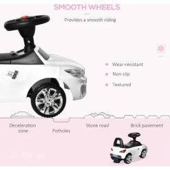 Ride in style with this fancy foot to floor ride-on from HOMCOM. Its red body and snazzy rims resemble a real car. Ideal for ages 18-36 months, the PP seats and high backrest allow young riders to use comfortably. With added music and flashing headlights, the entertainment is endless. They even have a secret base beneath the seat to keep toys and snacks. By having a big steering wheel and an anti-overturning system, your child can enjoy the ride safely.