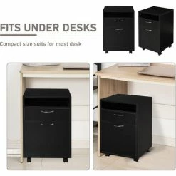 Marrying a sleek design with moderate storage space, this filing cabinet from HOMCOM will bring plenty of stylish functionality into your home or office. It features a large cupboard, a small drawer and an open compartment, giving you lots of room to organise so you can find your work quickly and easily. The frame is made from particle board – it is solid and sturdy for reliable everyday use, with the four wheels making it easily to move around: two of which can be locked to keep the unit in place. It’s finished with silver-coloured metal handles for an effortless design.