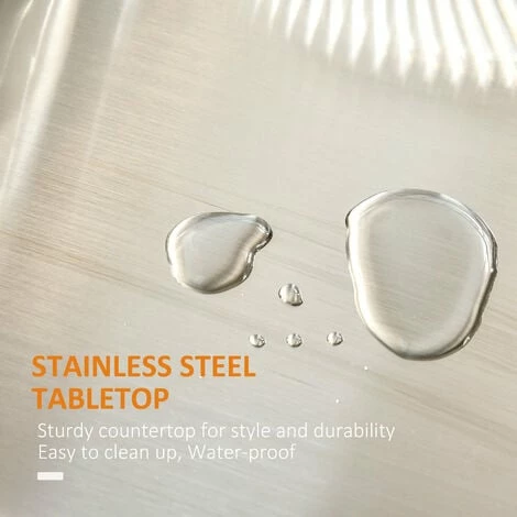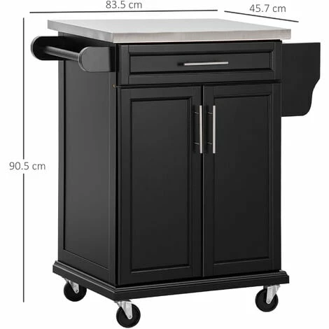 This stylish kitchen base unit from HOMCOM is a great addition to any kitchen space, providing additional storage and a preparation area. This bar cart comes with a drawer, storage cupboard, towel rail, spice rack and knife rack for plenty of storage. The metal countertop gives safe preparation area. Completed with four wheels to move around easily.