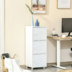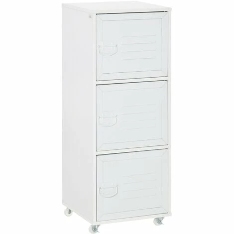 each compartment is fitted with a metal door to keep inside guarded. Front air vents for freshness inside. Handle on the front to open the door easily. Completed with four wheels to move around easily.