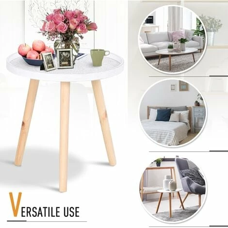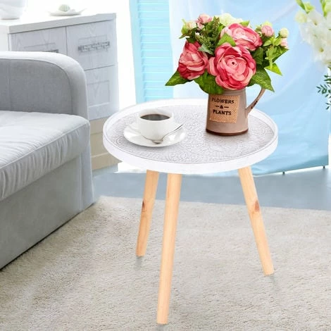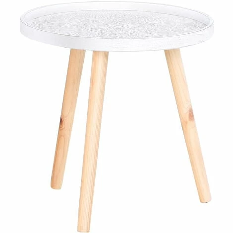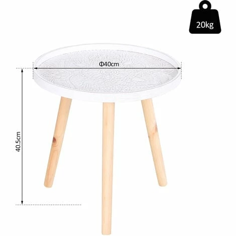 Bring beauty into your everyday surroundings with this side table from HOMCOM. Using MDF for enduring strength and resilience against everyday wear, the tabletop is crafted into a shallow saucer design, with raised edges to prevent anything from falling off and breaking. In a fresh white tone which brightens up your home instantly, the saucer is covered in flower etching all over for an elegant look, with water-resistant paint all over for extra protection. It is finished with three solid wooden legs, providing stability which is able to hold up to 20kg steadily. A beautiful companion for the bedroom, living room, hallway and office.