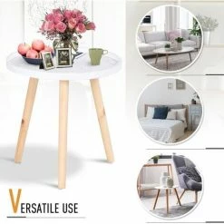 • Compact side table, featuring a shallow saucer top with three legs, in a fresh white and natural finish for an uplifting addition to your home