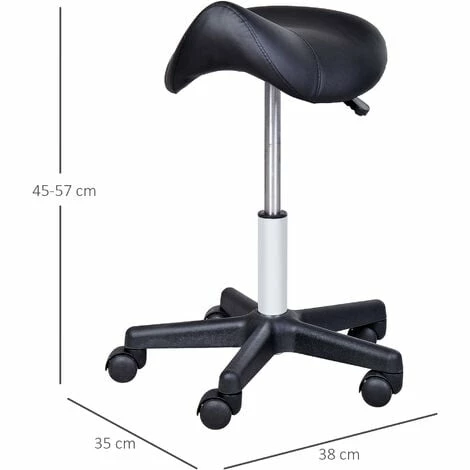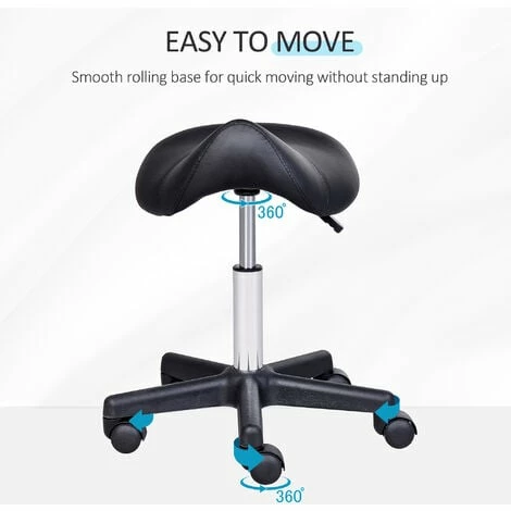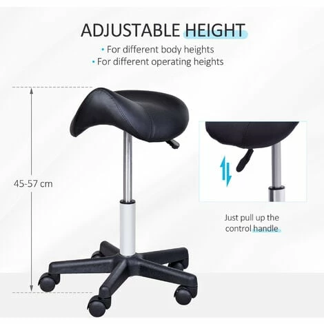 Ensure you have the correct posture when work in your saloon/tattoo parlour, or even at home, with this small office chair from HOMCOM. Using heavy-duty steel for a balanced and weighted base, With a height-adjustable design, this adjustable stool ranging from 49cm to 61cm to suit your needs. Curved in shape, the padded seat allows you to sit comfortably whilst keeping you supported and inclined to sit upright and in the correct posture. Five wheels for you to move around easily when seated.