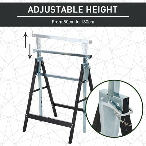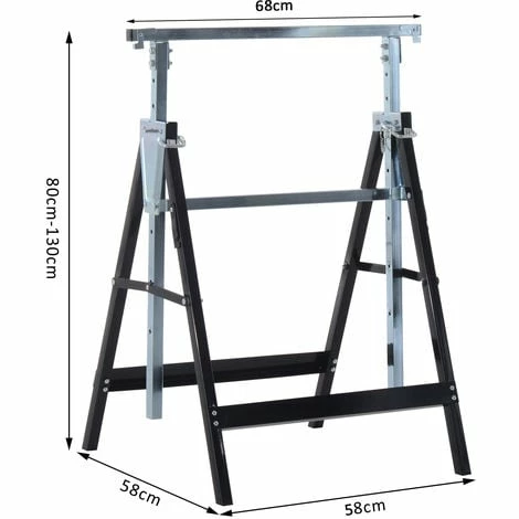 Make light work of your home/work DIY tasks with this saw horse set from HOMCOM. Using steel for the frame, each piece is strong and reliable, supporting up to 200kg collectively for you to get on with your tasks with ease. The height can be adjusted between 80cm and 130cm – allowing you to set to a level correct and safe for you. The foldable design equals easy storage and carrying around. Your new DIY best friend.