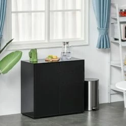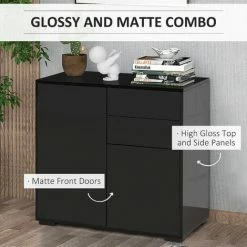 This HOMCOM cabinet is a durable and stylish addition to every home, keeping your space clean and tidy with ease. It’s made from MDF for a durable structure, with anti-tipping straps on the back for safety. The practical design, with the push-click drawers and cabinet doors makes them quick and effortless to open and close. The elevated base allows air to flow through for freshness. An effortless way to bring in sleek style into your living space.