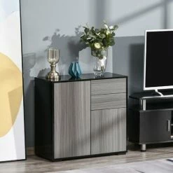 This HOMCOM cabinet is a durable and stylish addition to every home, keeping your space clean and tidy with ease. It’s made from MDF for a durable structure, with anti-tipping straps on the back for safety. The practical design, with the push-click drawers and cabinet doors makes them quick and effortless to open and close. The elevated base allows air to flow through for freshness. An effortless way to bring in sleek style into your living space.