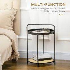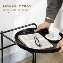 The steel side table with storage from HOMCOM is influenced by industrial and modern style. It features a top removable tray, making it easy to take drinks and food from the kitchen to the living room – or whatever else you want to use it for. A steel frame for strength, it’s finished with a top handle to move easily and foot pads, for light floor protection.