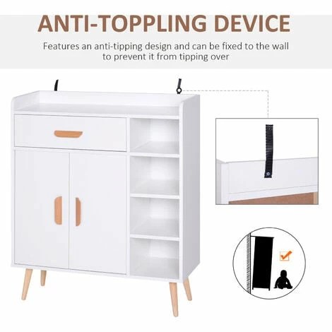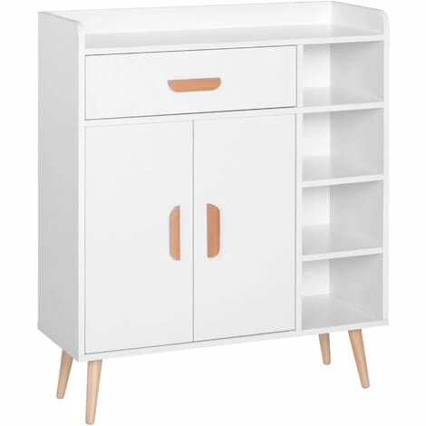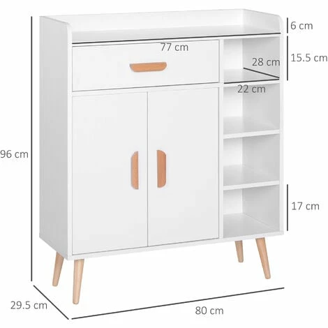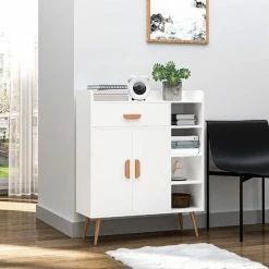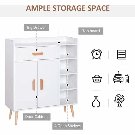 Keep your home stylish and the space tidy: look no further than this freestanding cabinet from HOMCOM. Features a spacious worktop, four open shelves, one slide-out drawer and a large cabinet with an adjustable shelf, giving a moderate amount of storage. All-match design indoor furniture fits most home decor