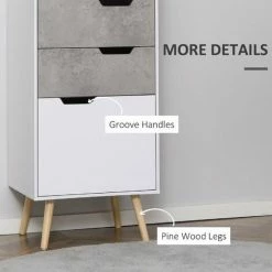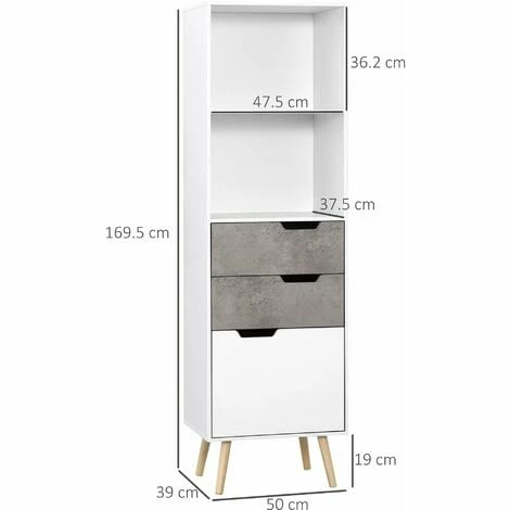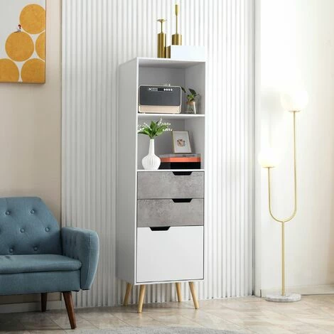 Simple storage is done like this HOMCOM tallboy cabinet. It comes with one large drawer, two small drawers and two top shelves: plenty of room for holding and displaying what you want in the bedroom, living room, hallway and office. The white structure comes with grey doors for a touch of neutral colour